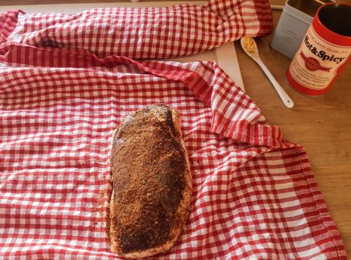 PS : Recommandation, bien rincer ne pas laisser + de 24 H au sel, car il deviendrait trop salé, et que même comme cela, il l’est suffisamment. Vous pouvez le parfumer avec les épices de votre choix (coriandre, thym, romarin…).