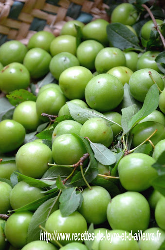 Lors d’une balade en forêt Cévenole, nous sommes tombés sur un arbre portant des prunes vertes, pas encore mûres de la taille d’une cerise et un peu aigres au goût. D’ailleurs ces prunes sous d’autres latitudes (au moyen-orient) sont consommées à la croque au sel comme nous croquons les radis chez nous. Je les ai transformées en une confiture absolument délicieuse que j’ai truffé de dragées aux amandes.