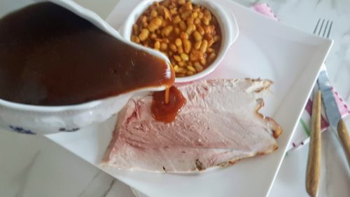 Durant la foire du porc, j’ai acheté un jambon de porc. J’ai réfléchi pour sa cuisson étalée sur trois heures au four. Je l’ai juste poivré et truffé de gousses d’ail. Avant de le déguster avec des haricots blancs à la sauce tomate maison et une réduction du jus de cuisson pour le napper. Vraiment aucun effort pour une pièce qui facilement calera douze gourmands au moins. Mais application des mesures sanitaires oblige, on peut congeler la viande une fois cuite découpée en tranches ou comme je l’ai fait, en offrir une partie. Qui a dit que cuire un gigot est difficile?
