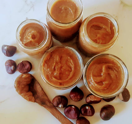 Pour faire de la confiture de châtaignes, il faut être motivé. Le plus contraignant dans l’opération étant d’enlever la première écorce épaisse de couleur marron puis la deuxième peau (pellicule blanche) de la châtaigne. Une fois ce cap passé, ce n’est pas plus difficile qu’une autre confiture. Si vous optez pour les fruits déjà épluchés du genre surgelés de chez Picard ou conservés sous vide, vous réduirez votre temps de travail de 50 %. Faites comme vous le sentez, cuisiner doit rester source de plaisir.