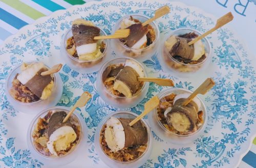 Ces petites verrines fraîcheur ont rempli leur office. Il faisait une chaleur étouffante ce soir là, et avec mes fonds de placards j’ai confectionné des minis-verrines. L’alliance magret réveillé par le peps de l’ananas avec le croquant des oignons frits. Mes convives ont bien apprécié. Et si vous vous laissiez happer par leur simplicité savoureuse ?