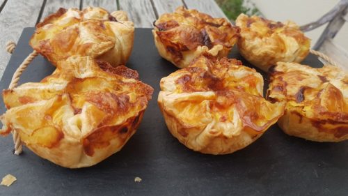 6 carrés de pâte feuilletée pur beurre – 1 jaune d’œuf pour la dorure