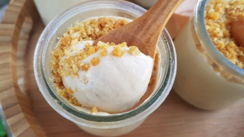 Une crème sans cuisson à base de tofu soyeux, j’adore rajouter quelques ingrédients et à chaque fois, c’est un régal. Les carambars à la maison nous en sommes fans, pour cette assemblage, je ne vais pas vous parler de recette. On fait fondre du chocolat et les bonbons, on mixe et puis c’est tout ! D’une simplicité enfantine, ce qui me va bien ces temps-ci, où il faut mettre en « veille » le jardin et s’occuper de tout le reste… Si vous aimez les carambars cette recette est faite pour vous.