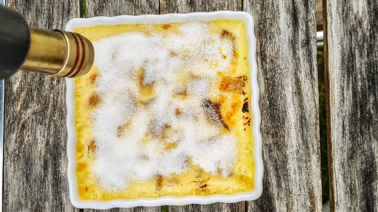 Au moment de la dégustation, saupoudrez avec une càsoupe de sucre faire passer le chalumeau, jusqu’à ce que le dessus se transforme en caramel.