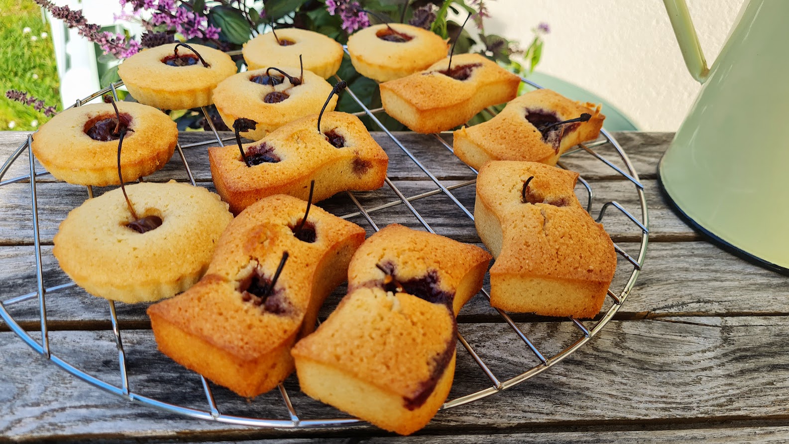 S’il vous reste des blancs d’oeufs après avoir confectionné une pâtisserie, il suffit de les recycler en financiers par exemple. J’ai toujours une boîte garnie de mignardises, que je tiens prête à dégainer pour le premier chaland qui sonne à ma porte pour se voir offrir un café. Je les ai truffés de cerises, il en faut une poignée pas plus et au vu de leur prix, ça tombe bien ! Ces financiers sont vraiment délicieux !