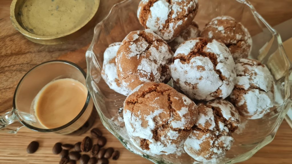 Une boîte à gourmandises vide, et plus rien à se mettre sous le dent à l’heure du café. Vite, confectionnons des amarettis maison, qui ont l’avantage de nécessiter peu d’ingrédients, pas de robot à mettre en route et une cuisson vraiment rapide. J’ai voulu tester la cuisson à l’air frayer, bien m’a pris, les biscuits étaient vraiment très moelleux à l’intérieur et légèrement croquants sur l’extérieur. Un délice parfumé au café !