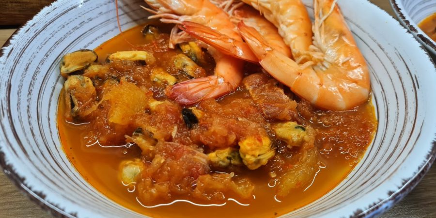 Ajoutez la chair de la courge, les épices (paprika, cumin, sel et poivre) ainsi que le cube de bouillon émietté. Versez le coulis de tomate et une partie de l’eau. Couvrir et laisser cuire pendant 20 minutes. Si à l’issue de ce temps, la sauce a bien réduite, rajoutez de l’eau s’il en manque. Puis déposez les moules décortiquées dans la sauteuse contenant le cucurbitacée. Poursuivre la cuisson pendant encore 10 minutes.
