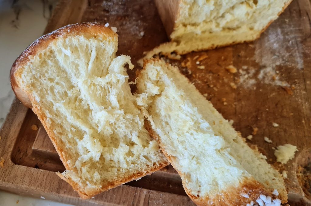 Si peu de beurre pour une brioche avec une mie ultraaaa filante… Une merveille de goût… Généralement, cette brioche est très riche et dense par la quantité de beurre contenue, mais celle-ci ne contient que 60 g ! La réussite vient du pétrissage… au bout le succès est bien là. Je l’ai dégustée nature, mais j’ai vu d’autres étaler généreusement de la pâte à tartiner maison et un autre un épaisse couche de confiture de fraises.….mais quel gourmandise cette brioche ! Elle va devenir ma chouchoute, vu comme elle ménage mes artères.