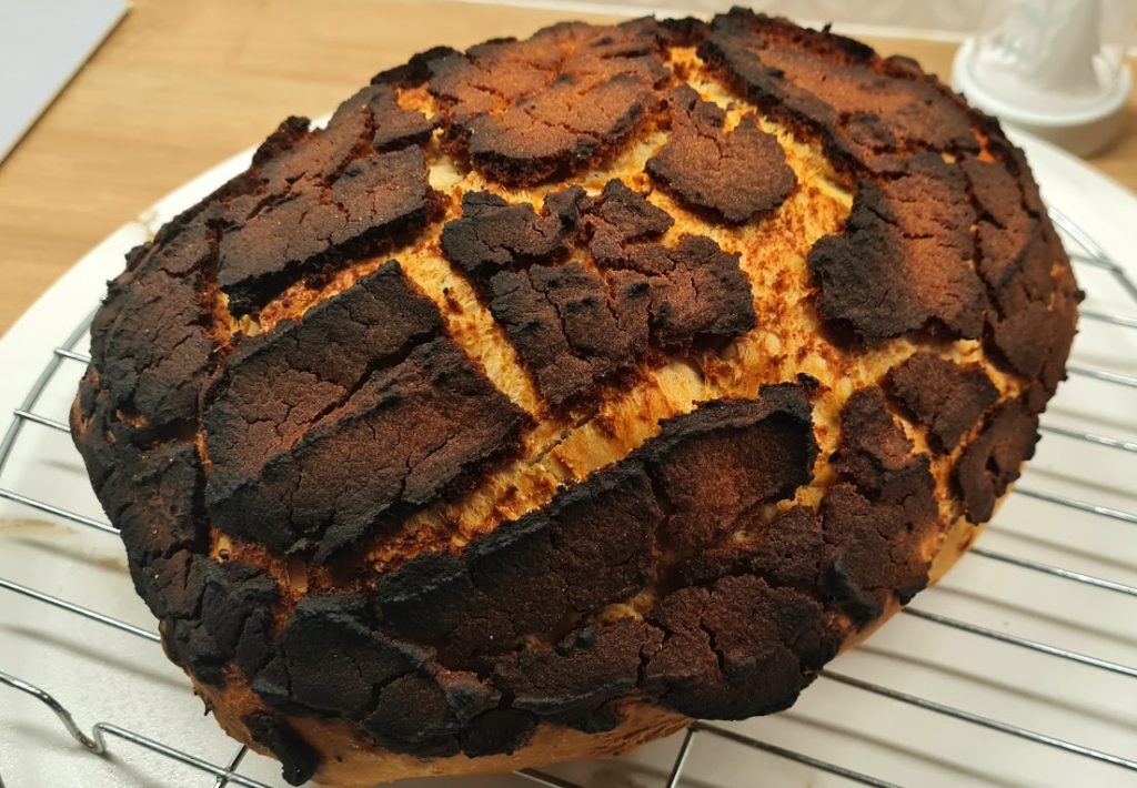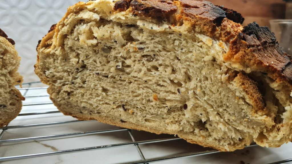 Sortir le pain, le laisser refroidir sur une grille avant de le trancher.
