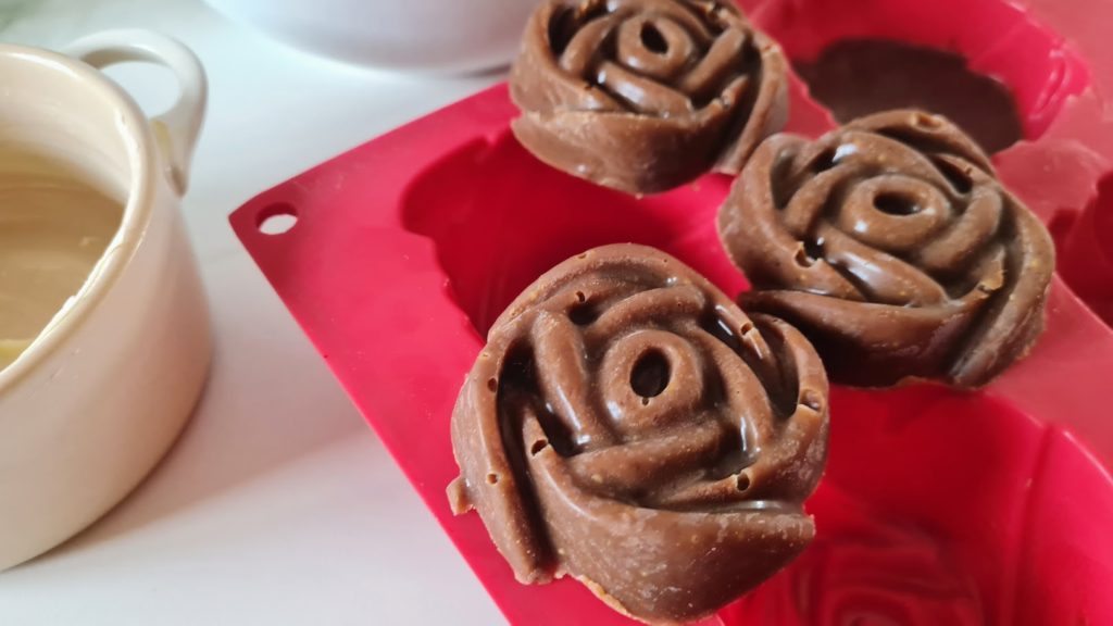 PS : J’ai doublé les quantités et j’ai beurré mes moules et garnis avec l’appareil. J’ai filmé et entreposé au congélateur. Lorsqu’on aura envie d’un peu de douceur. J’enfournerai directement à la sortie du frais en rajoutant 2 à 3 minutes de cuisson.