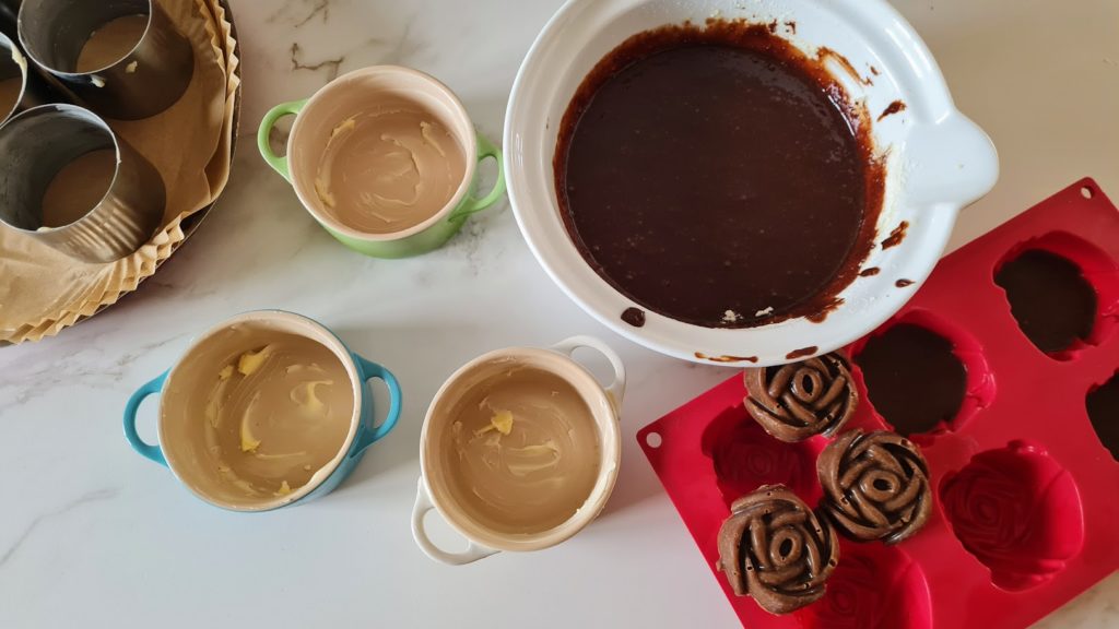 Pour le coeur coulant : 200 g de chocolat au lait – 50 g de beurre – 4 càsoupe de crème liquide entière