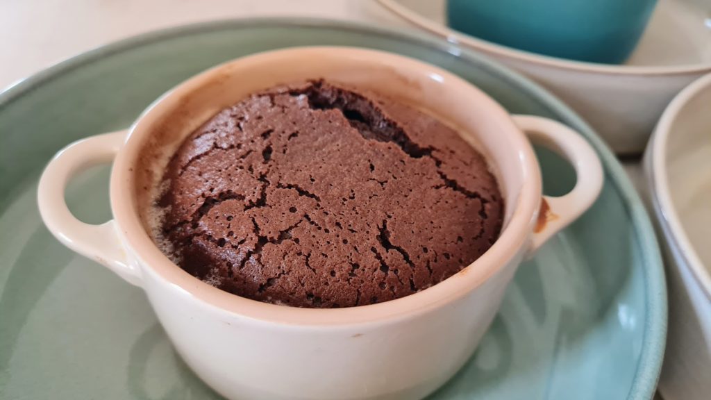 J’ai une amie, qui ne jure que par le chocolat, sinon rien. Alors de temps à autre, lorsque je l’invite pour le 4 heures, je fais le dessert qui me plait, et je lui décongèle un mi cuit faisant une heureuse au passage. Pas de difficulté pour cette recette, qui nécessite juste de s’y prendre un peu en avance, pour congeler le cœur qui deviendra coulant après cuisson.